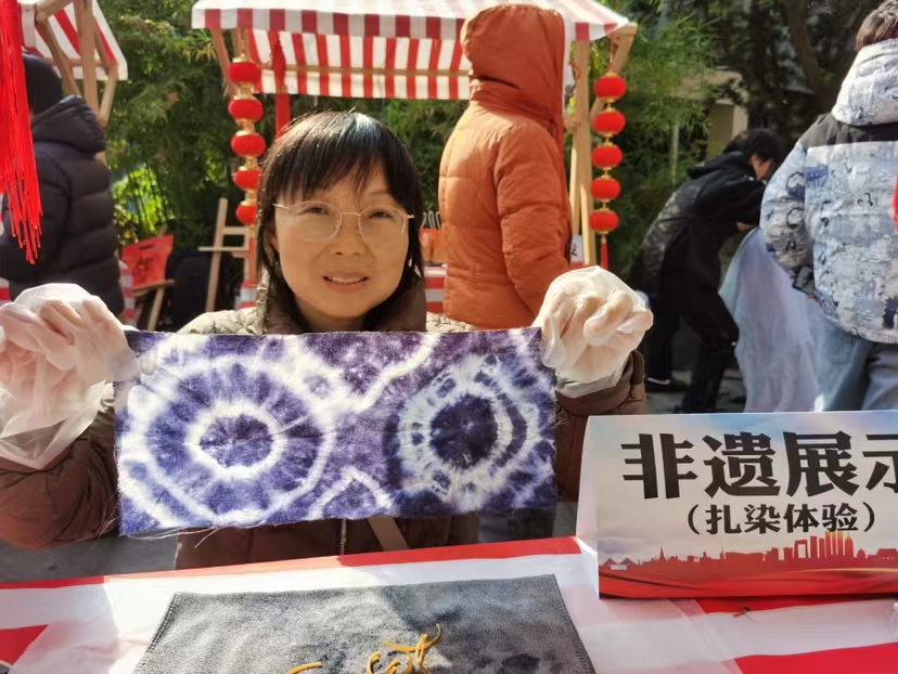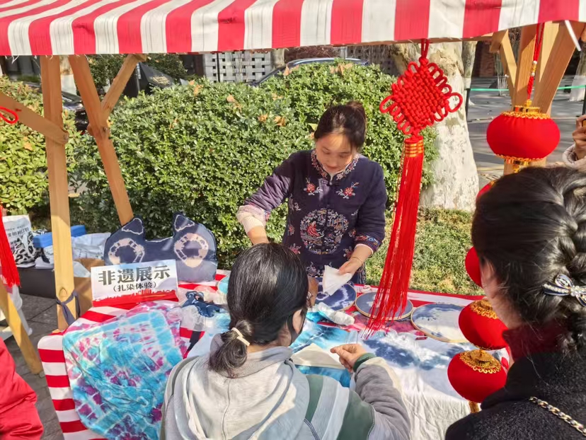 1月3日,南京市社科联组织南京非遗制作团队,来到国创园银杏广场开展“暖冬有约”志愿服务活动。这也是“南京社区科普大学”以在街区与市民面对面互动的方式开展社科普及活动。南京面塑和扎染非遗传承人,现场进行了非遗作品制作技法展示和教授,双塘街道附近百余名居民现场体验了南京非遗作品的制作。