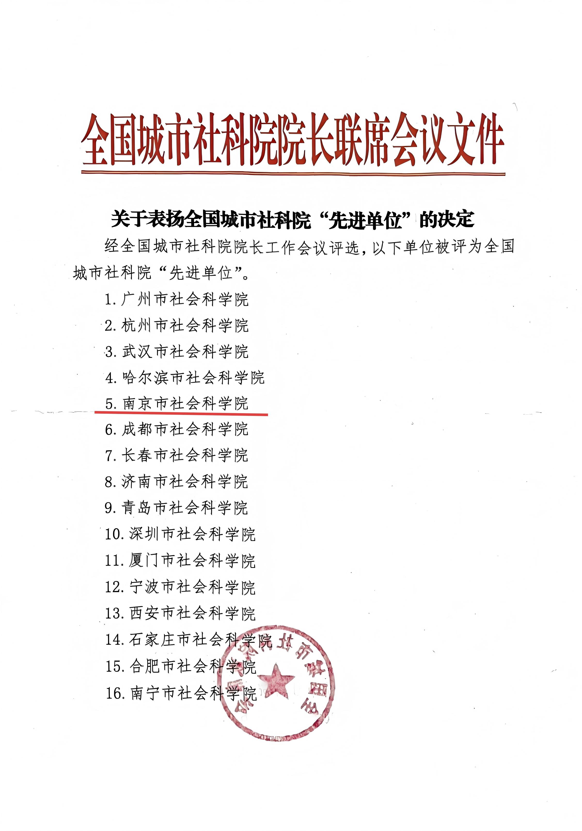 1.南京市社科院获评全国城市社科院“先进单位”。