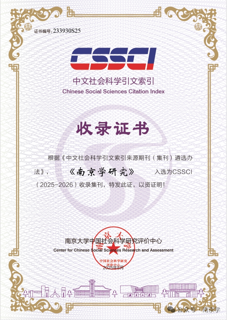 2025年8月,南京大学中国社会科学研究评价中心根据《中文社会科学引文索引来源期刊(集刊)遴选办法》公布了CSSCI(2025-2026)入选刊物,南京市社科联(院)3种刊物入选。其中,《南京社会科学》入选来源期刊,《现代城市研究》入选来源期刊(扩展版),《南京学研究》首次入选收录集刊。