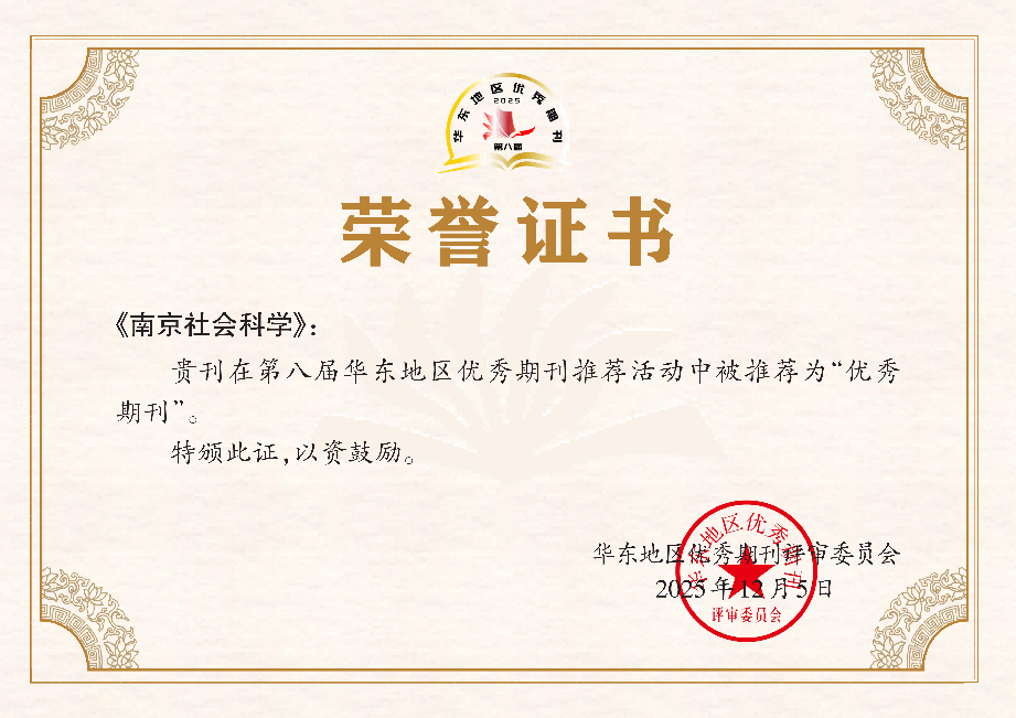 2025年11月13日,《中国学术期刊影响因子年报(人文社会科学·2025版)》正式公布最新数据,《南京社会科学》复合影响因子提升到7.855,创历史新高,在全国648家综合性人文、社会科学学科期刊影响力指数排名中,连续两年位列全国第三。2025年12月,《南京社会科学》获评第八届华东地区优秀期刊。