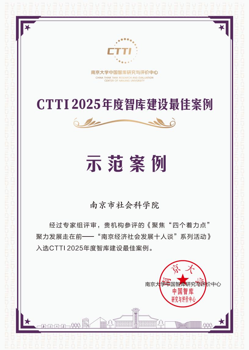4.南京市社科院多项智库成果获CTTI2025年度最佳案例、优秀成果奖。