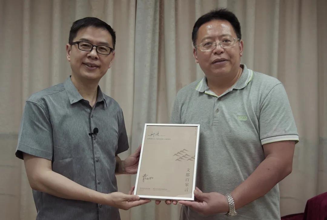 /曹劲松主席为郦波颁发《文都百家言》公益讲师证书