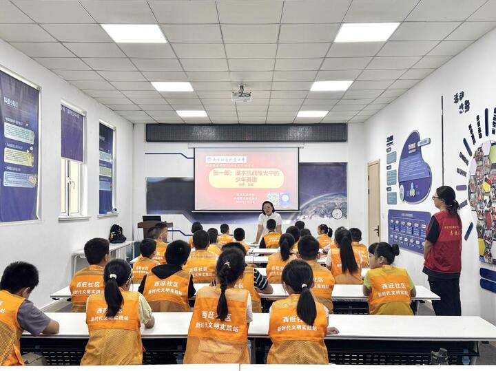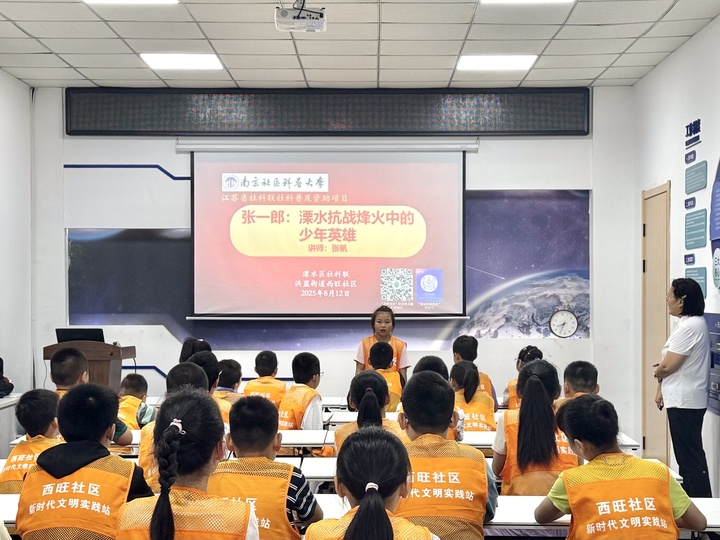 8月12日,溧水区洪蓝街道西旺社区新时代文明实践站、妇联、关工委与南京市社科联、溧水区社科联,联合开展江苏省社科联社会科学普及资助项目——“张一郎:溧水抗战烽火中的少年英雄”红色阅读科普活动。30名青少年积极参加活动,通过“读、思、做”,传承红色基因,汲取成长力量。