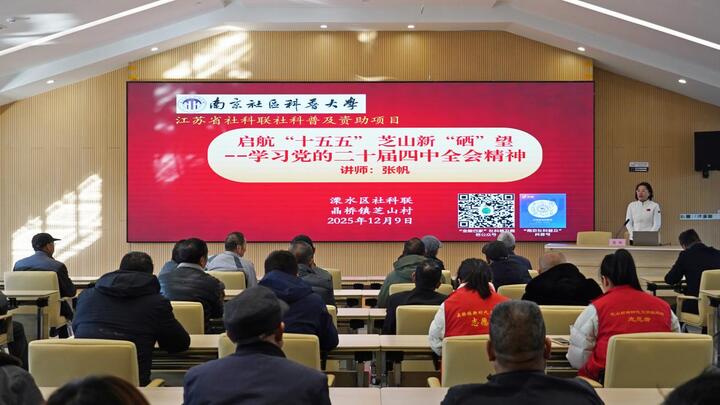 为持续推动优质社科普及资源下沉基层,丰富群众精神文化生活,让党的创新理论“飞入寻常百姓家”,12月9日,南京市社科联、江苏省社科联社科普及资助项目、晶桥镇新时代文明实践所、芝山村新时代文明实践站联合开展的“启航‘十五五’ 芝山新‘硒’望”主题理论宣讲课在芝山村新时代文明实践站生动开讲,区委党校张帆老师为现场60余名村民带来精彩授课。