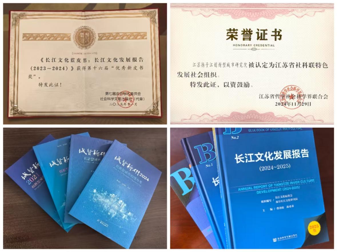 建设重点智库平台。积极推进扬子江创新型城市研究院的建设,先后荣获“江苏省社科联特色发展社会组织”称号及2025年“江苏智库实践十佳案例”;设立南京长江文化研究院与紫金山人才发展研究院,连续三年编纂《长江文化蓝皮书》,并于2025年获颁全国第十六届“优秀新皮书奖”。2025年,南京市社会科学院成为全国唯一荣获CTTI标杆案例和优秀成果特等奖的市级智库主办单位。