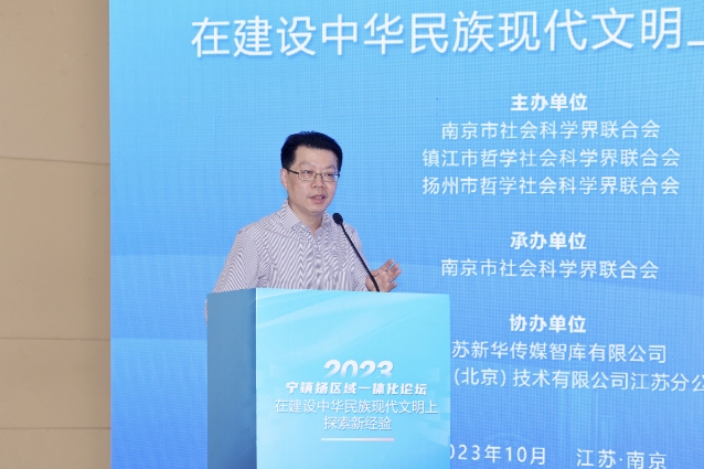 江苏省哲学社会科学界联合会党组书记、常务副主席张新科,江苏省社会科学院党委委员、副院长李扬,镇江市社科联党组书记、主席孙国林,扬州市社科联党组书记、主席晏明等出席论坛。张新科为论坛致开幕词。他指出,南京、镇江、扬州三地历史悠久,文化底蕴深厚,同时也是江苏省内重要的经济、文化、科技中心。在新时代背景下,三地一体化发展不仅有利于促进区域协调发展,担负新的文化使命,提升社科事业的整体水平,还有利于推动江苏在长三角一体化发展中的地位与作用,在建设社会主义文化强国中展现江苏担当,充分展现江苏“有能力也有责任在推进中国式现代化中走在前、做示范 ”。他表示,当前全省社科系统正扎实推进“五大社科”建设,通过理论社科、应用社科、大众社科、开放社科、数字社科的创新力、驱动力、影响力,推动实现江苏社科之“大 ”、 之“强 ”、之“先 ”。此次宁镇扬区域一体化论坛,不仅有 助于南京、镇江、扬州三地一体化高质量发展,也是江苏社 科事业高质量发展的必然要求,要坚持把论坛打造成为叫得响的全省社科工作品牌。他希望,各级专家学者能够关注关心江苏社科工作和南 京、镇江、扬州三地一体化发展进程,在交流中碰撞智慧火花,在探讨中凝聚行动共识,共同为深化南京、镇江、扬州 三地一体化发展目标而努力奋斗。