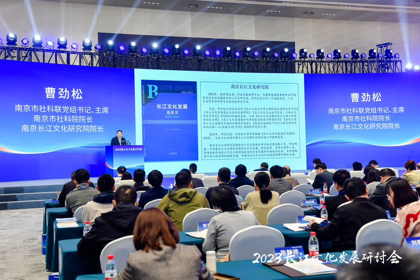 南京市社科联党组书记、主席,市社科院院长,南京长江文化研究院院长曹劲松现场发布《长江文化发展蓝皮书2022—2023》。蓝皮书站在全国视角,归纳阐述了长江文化的历史内涵与时代价值,用案例形式展现长江沿线城市贯彻落实党中央各项要求的生动实践,并提出了新发展阶段保护传承发展长江文化的路径思考。