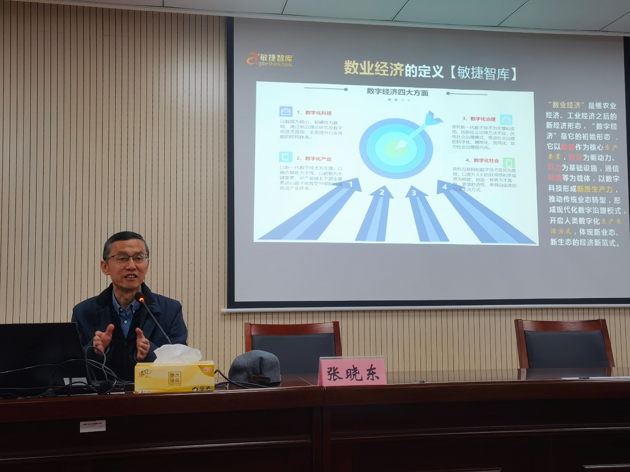 张晓东院长系统阐述了“数业经济”的理论内涵与实践框架,提出“数业经济”是继农业经济、工业经济之后,以数据为核心生产要素、以融合创新为底层逻辑的新经济形态。张院长从技术革命、产业融合、组织重塑、职业变迁等多个维度,深入剖析了“万物互联、万事皆算”时代背景下,全球发展格局、国家竞争范式、社会治理模式以及个人职业发展所面临的深刻变革与重塑。他指出,当前我们正从“数字化”迈向“数业化”,其核心是千行百业自身的数化重构,而不仅仅是技术应用。