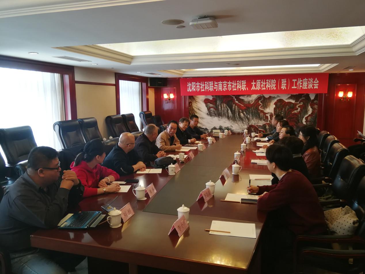 在沈阳市社科联调研期间,张主席一行与沈阳市社科联以及同期到沈阳调研的太原市社科院(联)的同志就区(县)社科联建设、社会团体党建工作以及社科事业发展经验进行了深入沟通交流、加强了相互了解。期间,沈阳市社科联袁柳主席、唐丽娟副主席、太原市社科院(联)赵晋君副院长以及相关部门负责同志向课题组详细介绍了两市在社团管理、科研资政、科普育人、社团党建等方面的详细情况。沈阳市社科联“辽海沈阳讲坛”品牌、社会团体成立联合党支部、开通社团清理便捷通道等方面的经验做法给课题组留下了深刻印象。随后,课题组赴沈阳社科普及基地“九.一八”历史博物馆进行了实地调研。