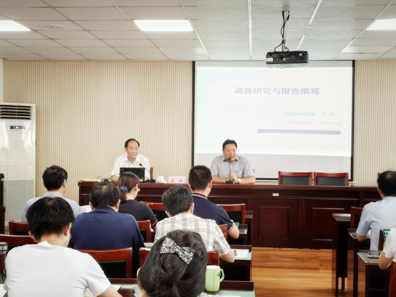 6月10日下午,南京市社科联(院)邀请江苏省政府研究室副主任沈和,围绕“调查报告与研究撰写”主题为联(院)全体同志开设专题讲座。本次讲座为“提升资政能力培训班”系列讲座第二期。