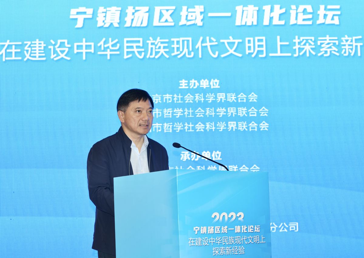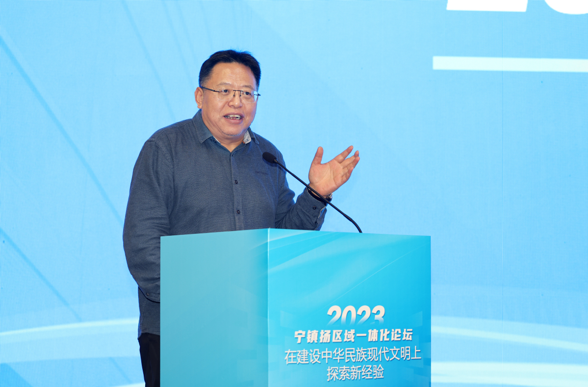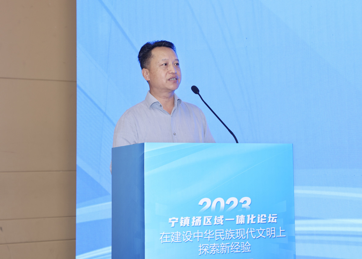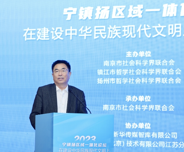 江苏省哲学社会科学界联合会党组书记、常务副主席张新科,江苏省社会科学院党委委员、副院长李扬,镇江市社科联党组书记、主席孙国林,扬州市社科联党组书记、主席晏明等出席论坛。张新科为论坛致开幕词。他指出,南京、镇江、扬州三地历史悠久,文化底蕴深厚,同时也是江苏省内重要的经济、文化、科技中心。在新时代背景下,三地一体化发展不仅有利于促进区域协调发展,担负新的文化使命,提升社科事业的整体水平,还有利于推动江苏在长三角一体化发展中的地位与作用,在建设社会主义文化强国中展现江苏担当,充分展现江苏“有能力也有责任在推进中国式现代化中走在前、做示范 ”。他表示,当前全省社科系统正扎实推进“五大社科”建设,通过理论社科、应用社科、大众社科、开放社科、数字社科的创新力、驱动力、影响力,推动实现江苏社科之“大 ”、 之“强 ”、之“先 ”。此次宁镇扬区域一体化论坛,不仅有 助于南京、镇江、扬州三地一体化高质量发展,也是江苏社 科事业高质量发展的必然要求,要坚持把论坛打造成为叫得响的全省社科工作品牌。他希望,各级专家学者能够关注关心江苏社科工作和南 京、镇江、扬州三地一体化发展进程,在交流中碰撞智慧火花,在探讨中凝聚行动共识,共同为深化南京、镇江、扬州 三地一体化发展目标而努力奋斗。