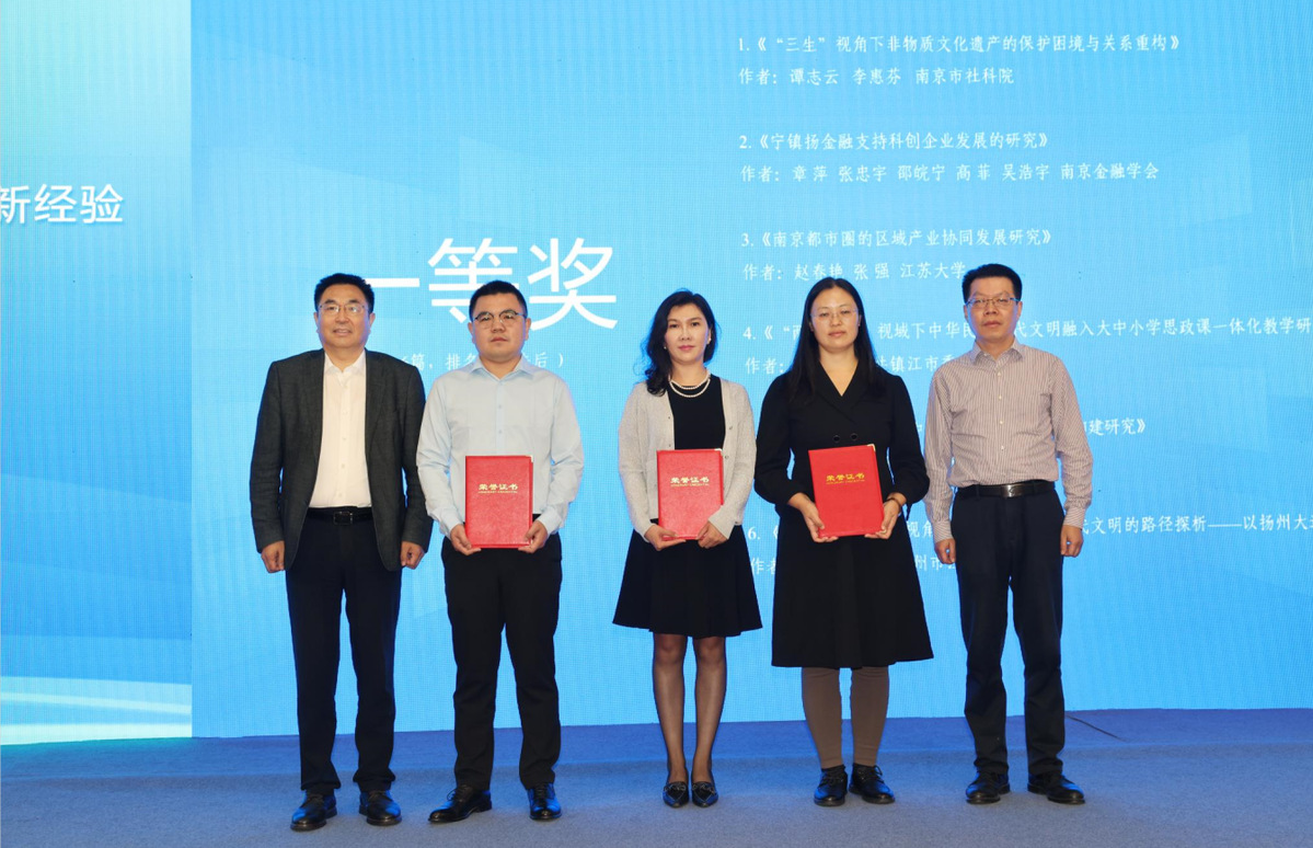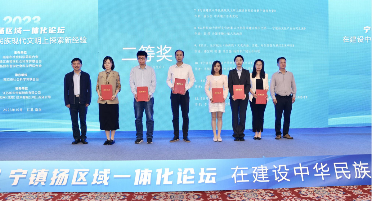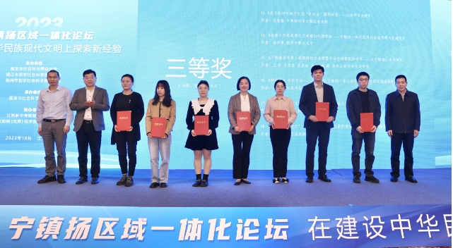 本次论坛的论文征集由宁镇扬智库联盟发起,共征集到200余篇,并甄选出36篇优秀论文予以表彰。现场,晏明宣读表彰通报,与会主要领导为一等奖、二等奖、三等奖获奖代表颁发荣誉证书。