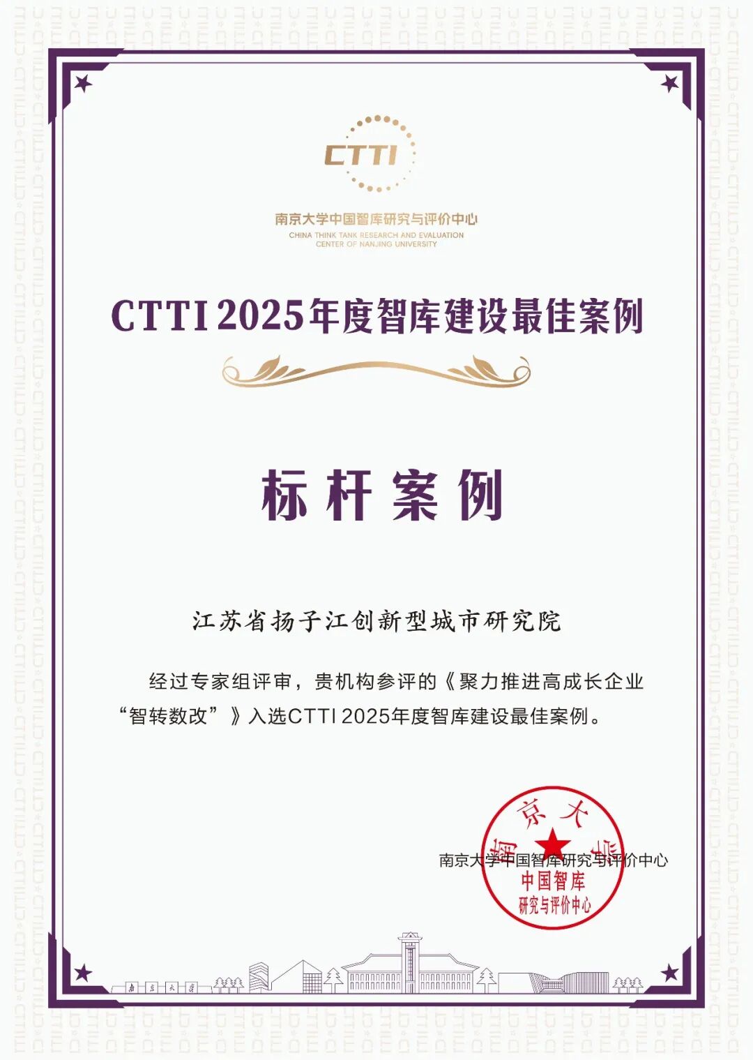 市社科院申报的案例《聚焦“四个着力点”聚力发展走在前——“南京经济社会发展十人谈”系列活动》获评“CTTI 2025年度智库建设最佳案例——示范案例”
