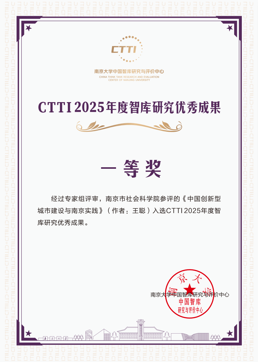 市社科院王聪副研究员的成果《中国创新型城市建设与南京实践》获评“CTTI 2025年度智库研究优秀成果——一等奖”
