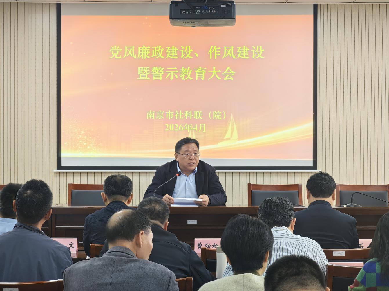 4月10日,市社科联(院)召开党风廉政建设、作风建设暨警示教育大会,联(院)全体党员、干部参加会议,联党组书记、主席曹劲松主持会议并讲话。