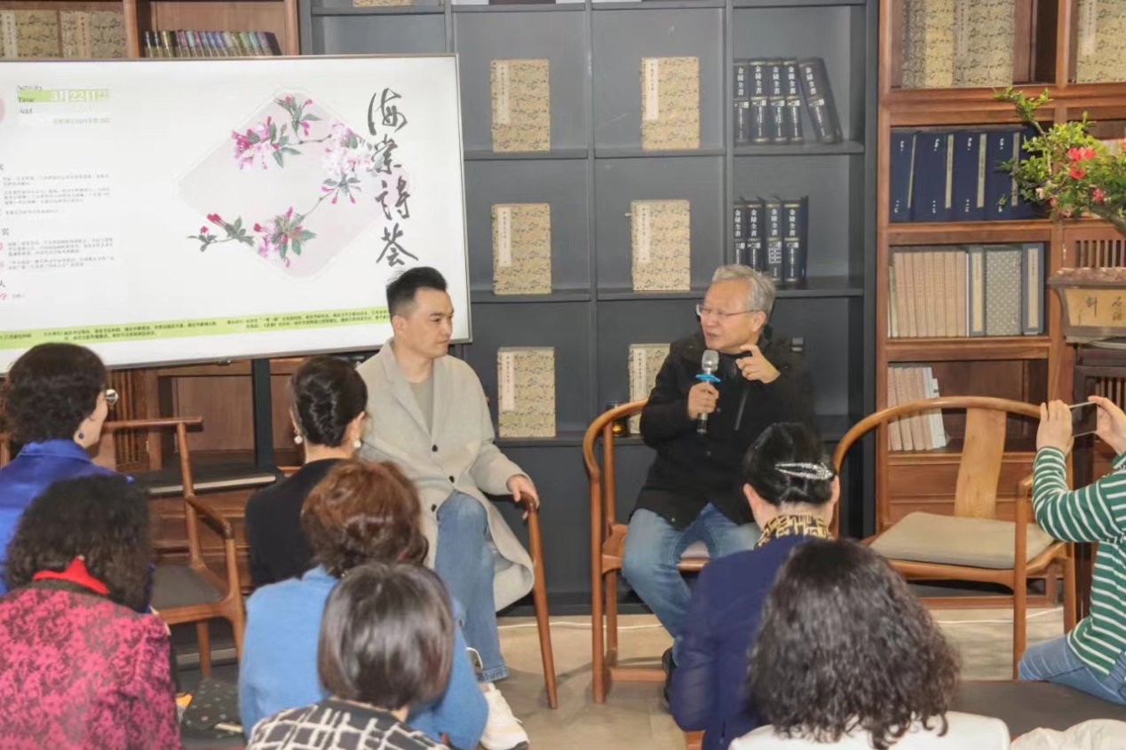 江南时报讯(记者 钱海盈)海棠花开“金陵第一名胜”,感受文都南京春光胜境;莫愁诗荟“江南第一名湖”,传承中华文化经典文学。日前,“阅美南京”第十四期“海棠诗荟”举办,作家、文化学者薛冰,江苏省作家协会会员、中国诗歌学会理事、莫愁文化研究会副会长徐行,莫愁文化研究会常务副会长李军,国家一级美术师、江苏省国画院原副院长喻慧,“学习强国”播音朗诵专家团成员,中国播音主持“金话筒”奖姜林杉相聚莫愁湖畔莫愁书院,从文学、艺术等多重领域,讲述“莫愁湖畔的海棠盛景,海棠花开中的莫愁诗意”。