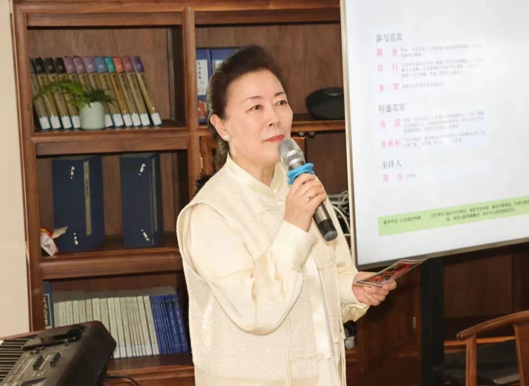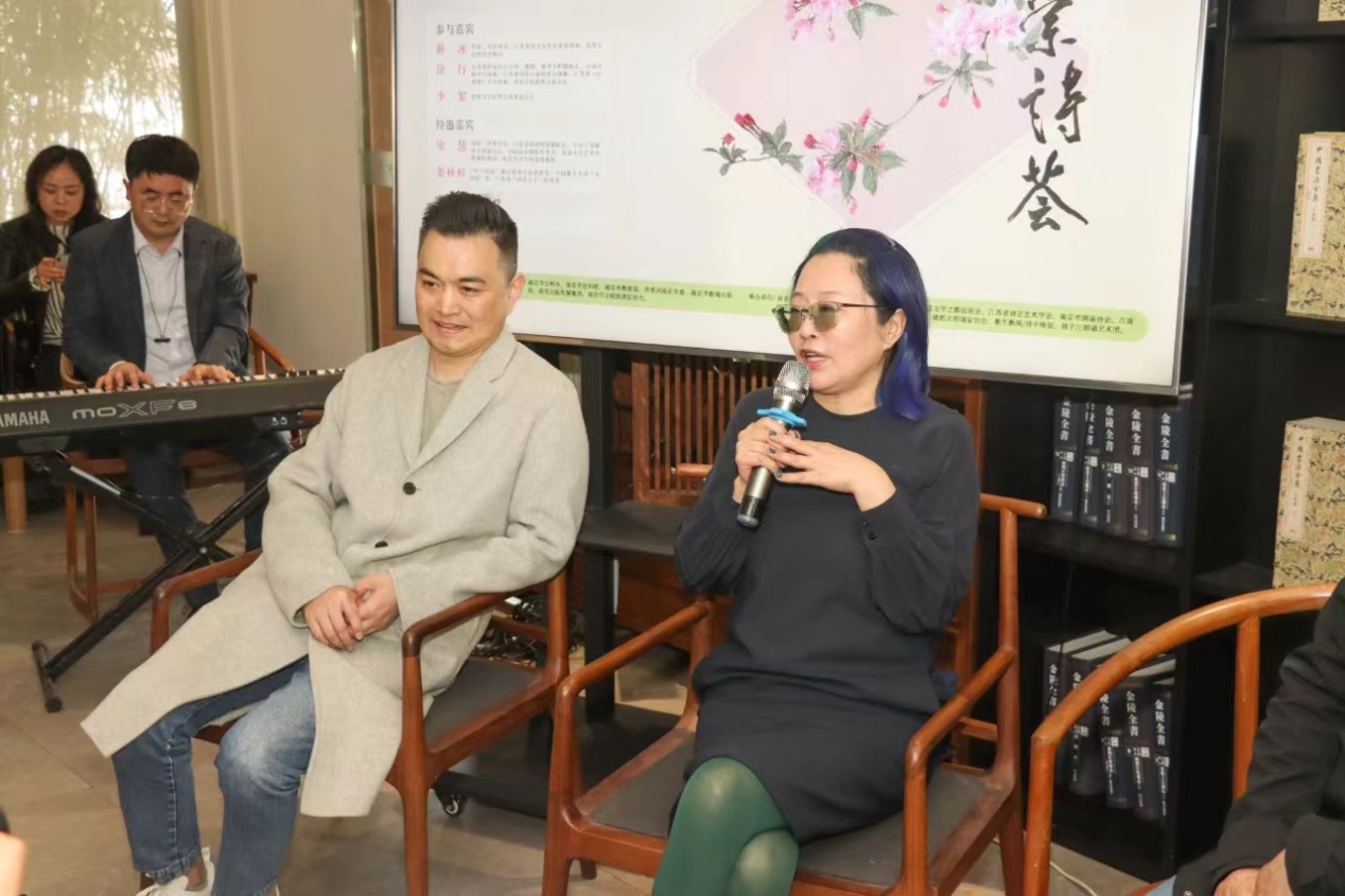 姜林杉带领杨薇、丁文隽等南京市朗诵协会20余位会员代表诵读《海棠诗荟》中收录的诗词,青年演奏家严艺格现场伴奏。姜林杉表示,通过阅读《海棠诗荟》中收录的诗词,可以感受到千百年来中国人对海棠花的赞咏和喜爱。书中优美的注解文字在介绍诗词内容的同时还讲述了诗人创作的背景。优秀的朗诵作品,离不开对作品的理解,理解后才能更好地通过自己的语言体现文字之美。