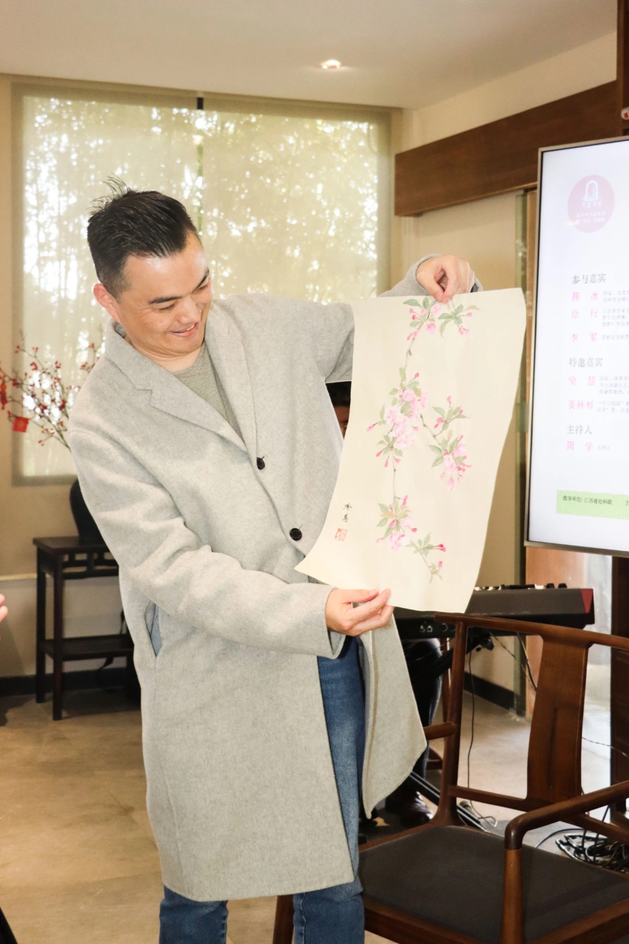 喻慧分享了为“海棠诗荟”活动创作的题为《一枝海棠》的书画作品的背后故事。她认为艺术家应该拥有丰富的生活体验,今天活动的举办地莫愁书院,身处莫愁湖畔,一路走来,满目海棠花尽情绽放,带给人创作的激情和冲动。