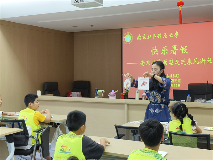 2024年7月24日上午,由南京市社科联主办的“南京社区科普大学——非遗南京面塑公益课堂”在来凤街社区开讲。