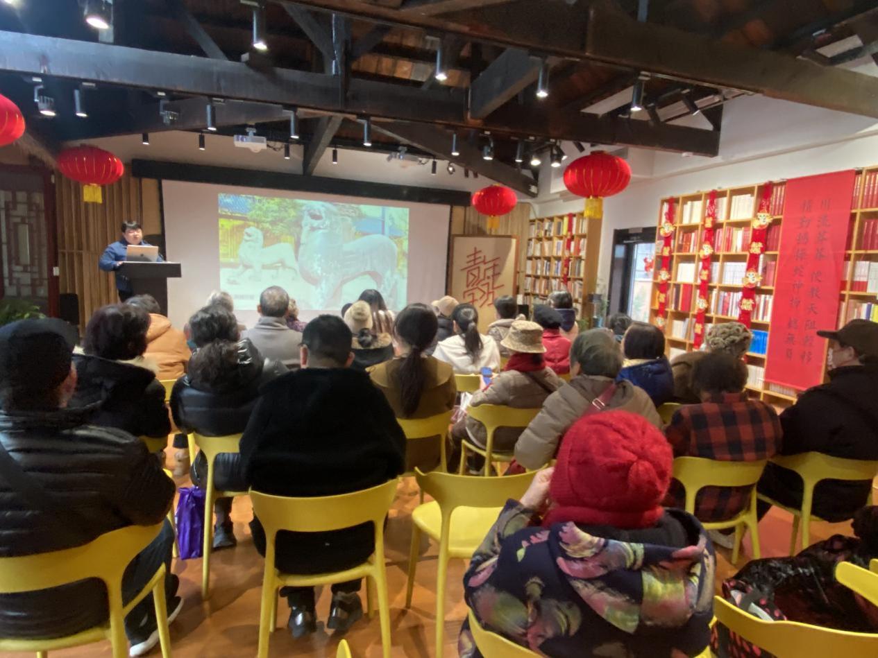 活动中,邵老师详细介绍了六朝的历史脉络。通过邵老师现场展示的现存都城遗址、建筑遗址等众多遗迹照片,居民们仍能感受到当时的繁华盛景。接着,邵老师又展示了石刻照片。这些石刻分布在南京栖霞区、江宁区以及丹阳等地,是南朝时期帝王和王侯陵墓前的神道石刻,类型丰富多样,包括石兽、石柱、石碑等。这些珍贵的石刻不仅是历史的见证,更是艺术的瑰宝。通过邵老师的详细讲解和生动展示,现场的居民们仿佛穿越时空,亲身感受了六朝陵墓石刻的历史变迁,对这段古老的历史有了更深刻的认识。