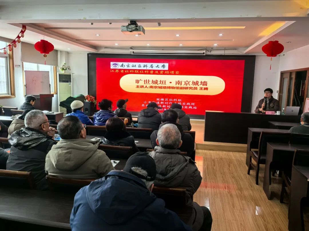 “南京社区科普大学”是江苏省社科联科普及资助项目,开展以来获得了基层群众的广泛欢迎。本次活动由鼓楼区社科联、小市街道新时代文明实践所和东井亭社区新时代文明实践站承办,主讲人王腾长期从事城墙研究、策展及社教工作,“咖位”十足。