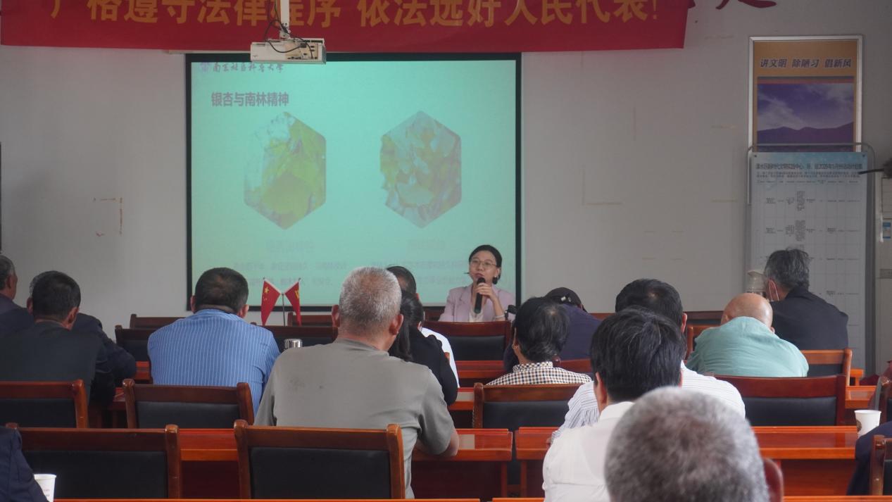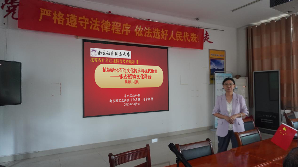 5月9日,“南京社区科普大学”精品课堂在南京国家农高区曹家桥村开讲。本次课堂是江苏省社科联社科普及资助项目,在南京市社科联指导下,由南京国家农高区、南京林业大学白马校区承办。课堂以“植物活化石的文化传承与现代价值——银杏植物文化科普”为主题,由南京林业大学白马校区组织员、讲师杨帆主讲。课堂以银杏为纽带,串联起南京林业大学的科研基因、南京的千年银杏文化,以及校地融合推动乡村振兴的创新实践。