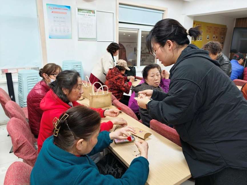 居民们全神贯注、动手实践,指尖轻捻、细心雕琢,原本普通的绒丝在巧手下逐渐舒展,化作一朵朵形态生动、色泽温润的红梅。大家相互交流心得、展示作品,分享创作乐趣,现场氛围温馨热烈。完成作品的居民们爱不释手,纷纷表示既学到了非遗知识,又体验了手工创作的快乐,真切感受到传统工艺的精妙。