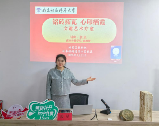 为推动本土文化遗产活化利用,以艺术疗愈温润社区民心,3月21日下午,市社科普及基地南京传媒学院美术与设计学院“研美同行”主题精品课堂走进栖霞区迈皋桥街道瑞丰园社区。南京传媒学院殷星副教授带领十组未成年人家庭开展“铭砖拓瓦、心印栖霞”文遗艺术疗愈体验,南传相关专业学生以“艺术伙伴”身份参与其中,通过讲解栖霞本土历史底蕴、触摸瓦当、拓片创作、交流分享等环节,让居民感受文遗魅力、共抒家园情怀。该活动由南京市社科联指导,栖霞区社科联、迈皋桥街道和瑞丰园社区联合举办。